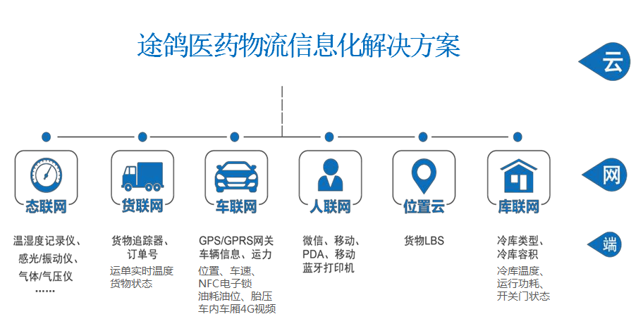 途鴿平臺通過全球衛(wèi)星定位系統(tǒng)/北斗,移動通訊,計算機網(wǎng)絡(luò),集成高精準符合行業(yè)要求的溫濕度數(shù)據(jù)傳感器。對于運輸過程,需要實現(xiàn)醫(yī)藥冷鏈車全程溫濕度透明監(jiān)控,確保溫濕度數(shù)據(jù)全程可視化。